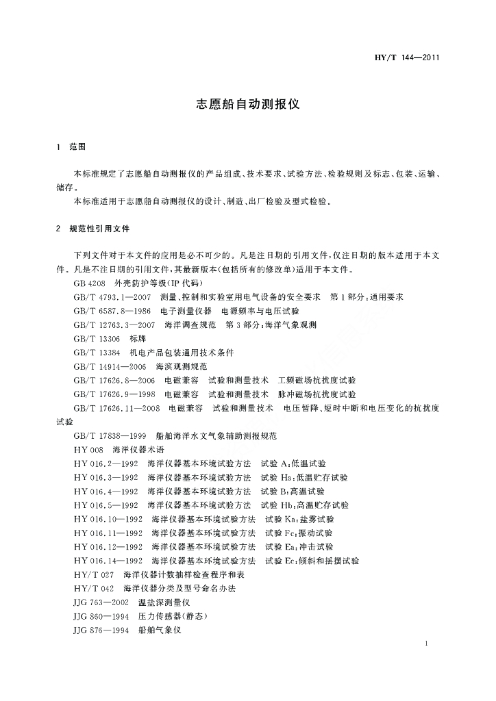 HY/T 144-2011 志愿船自动测报仪