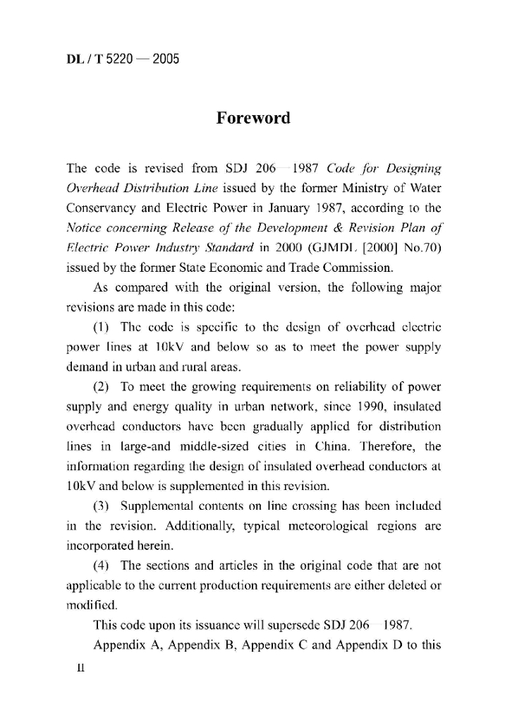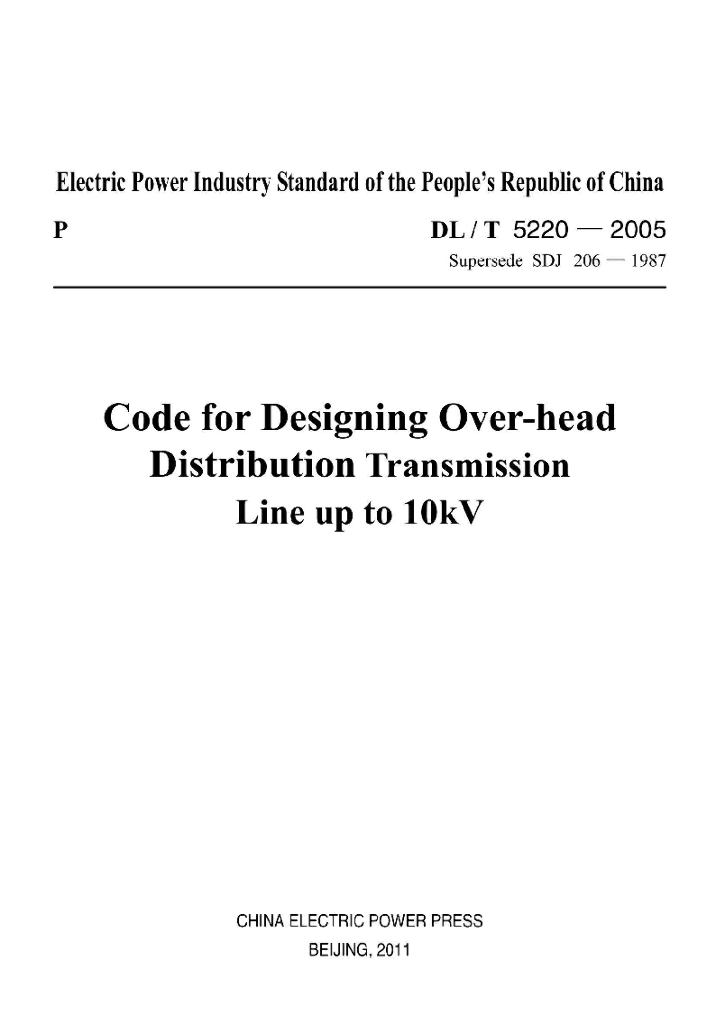 DL/T 5220-2005 10kV及以下架空配电线路设计技术规程(英文版)