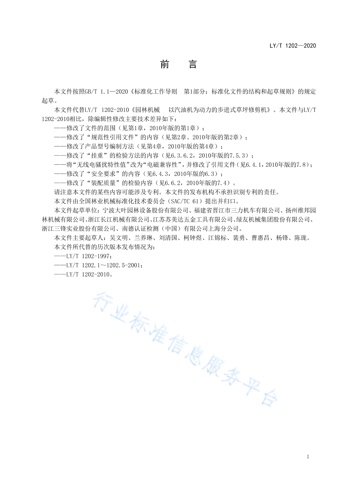 LY/T 1202-2020 园林机械 以汽油机为动力的步进式草坪修剪机