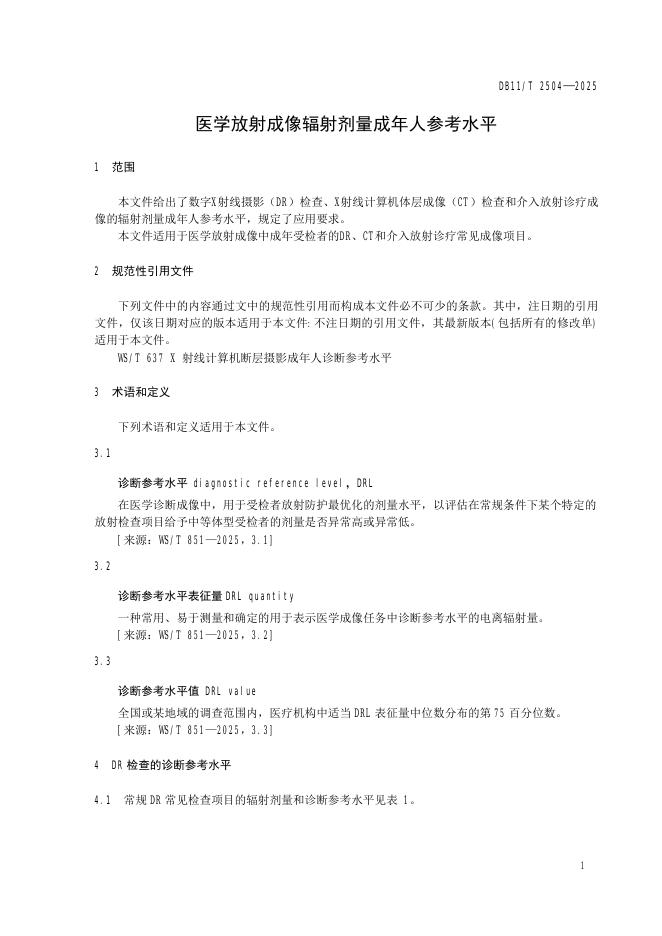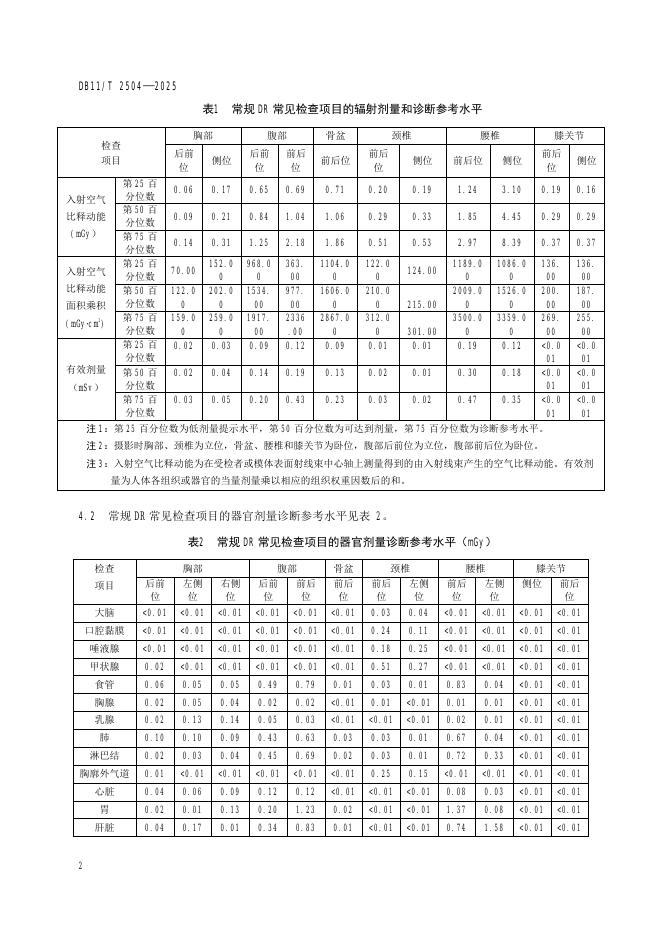 DB11/T 2504-2025 医学放射成像辐射剂量成年人参考水平