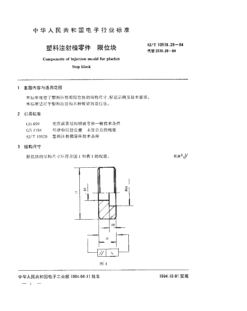 SJ/T 10519.28-1994 塑料注射模零件 限位块