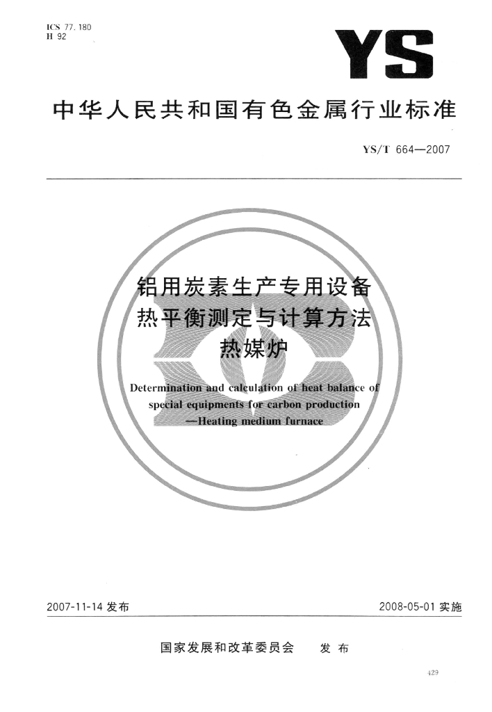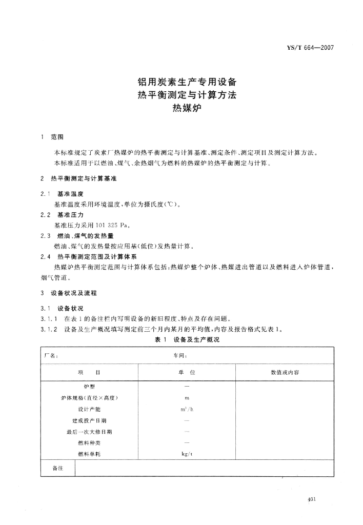 YS/T 664-2007 铝用炭素生产专用设备 热平衡测定与计算方法 热媒炉