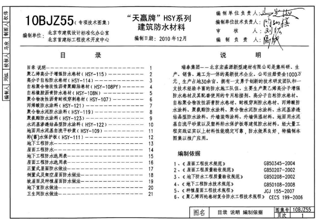 10BJZ55 天赢牌HSY系列建筑防水材料图集