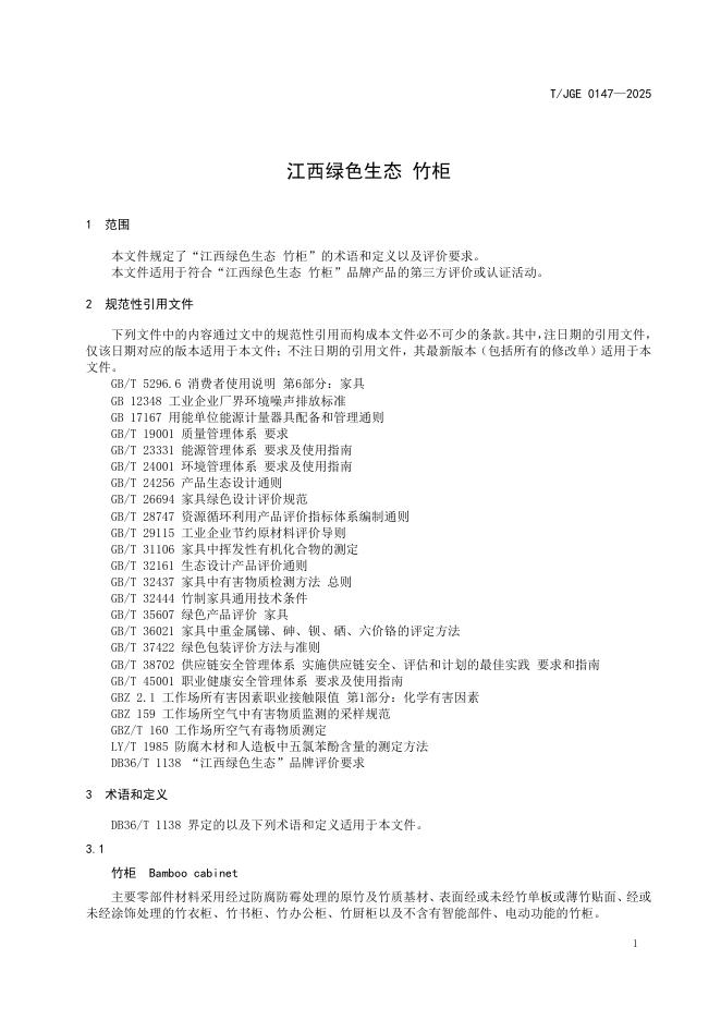 T/JGE 0147-2025 江西绿色生态 竹柜