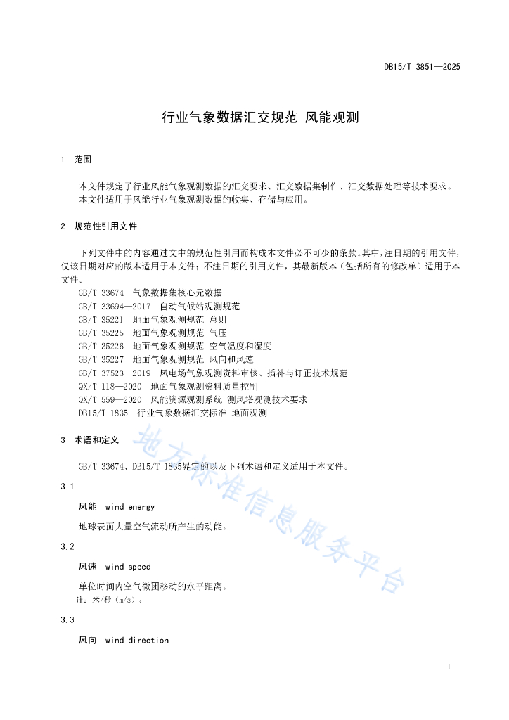 DB15/T 3851-2025 行业气象数据汇交规范 风能观测