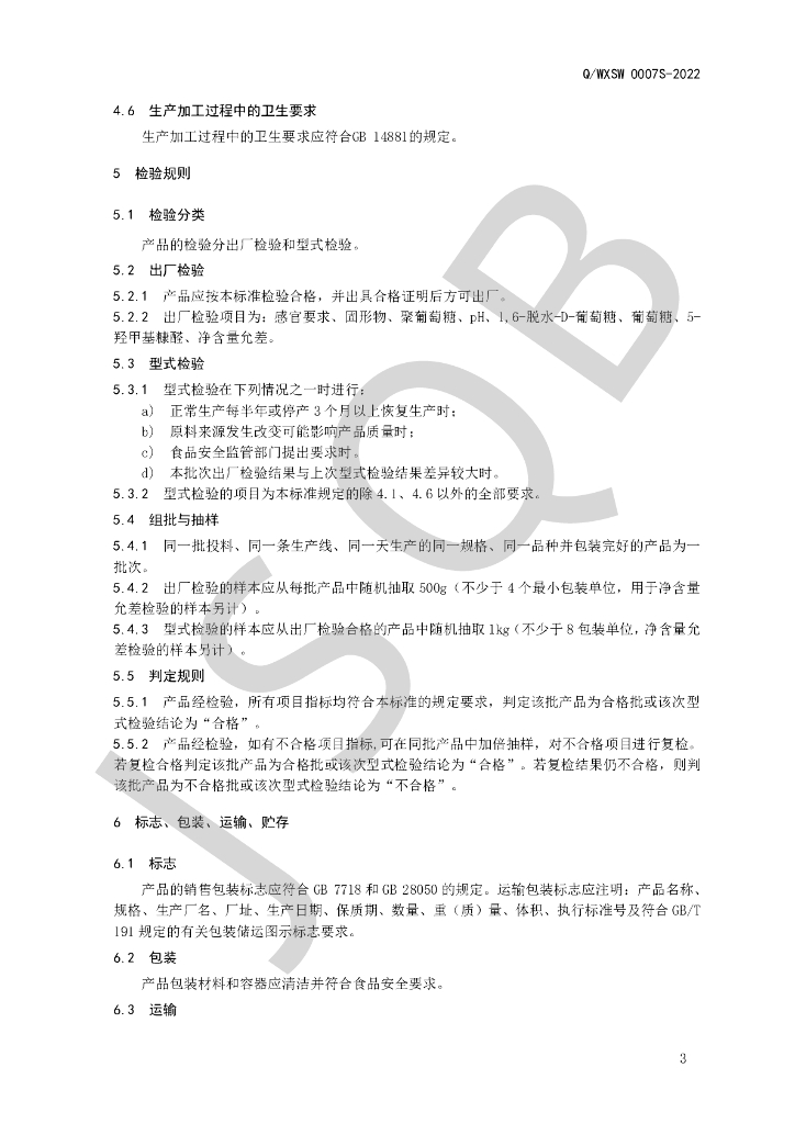 Q/WXSW 0007S-2022 液体聚葡萄糖系列