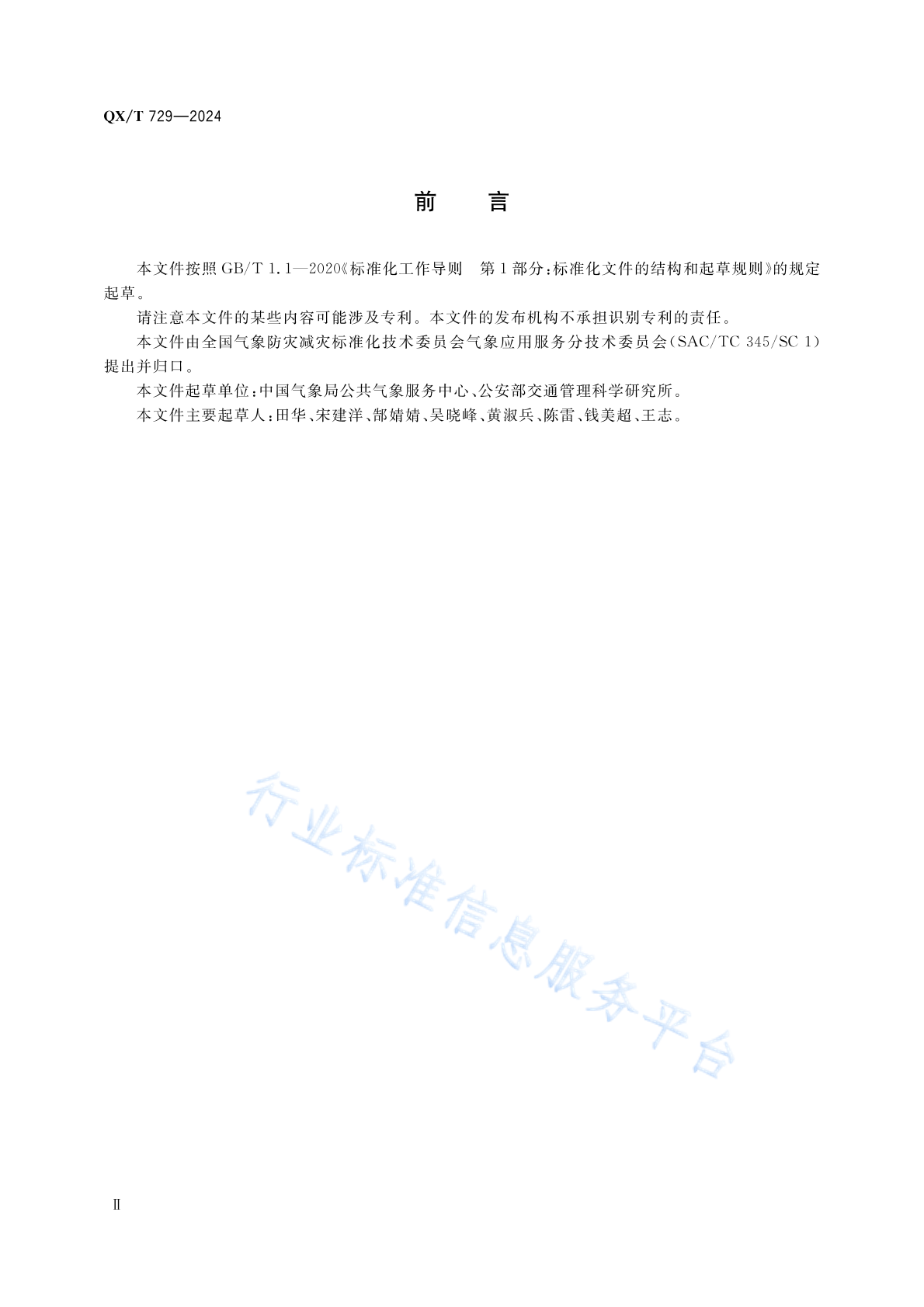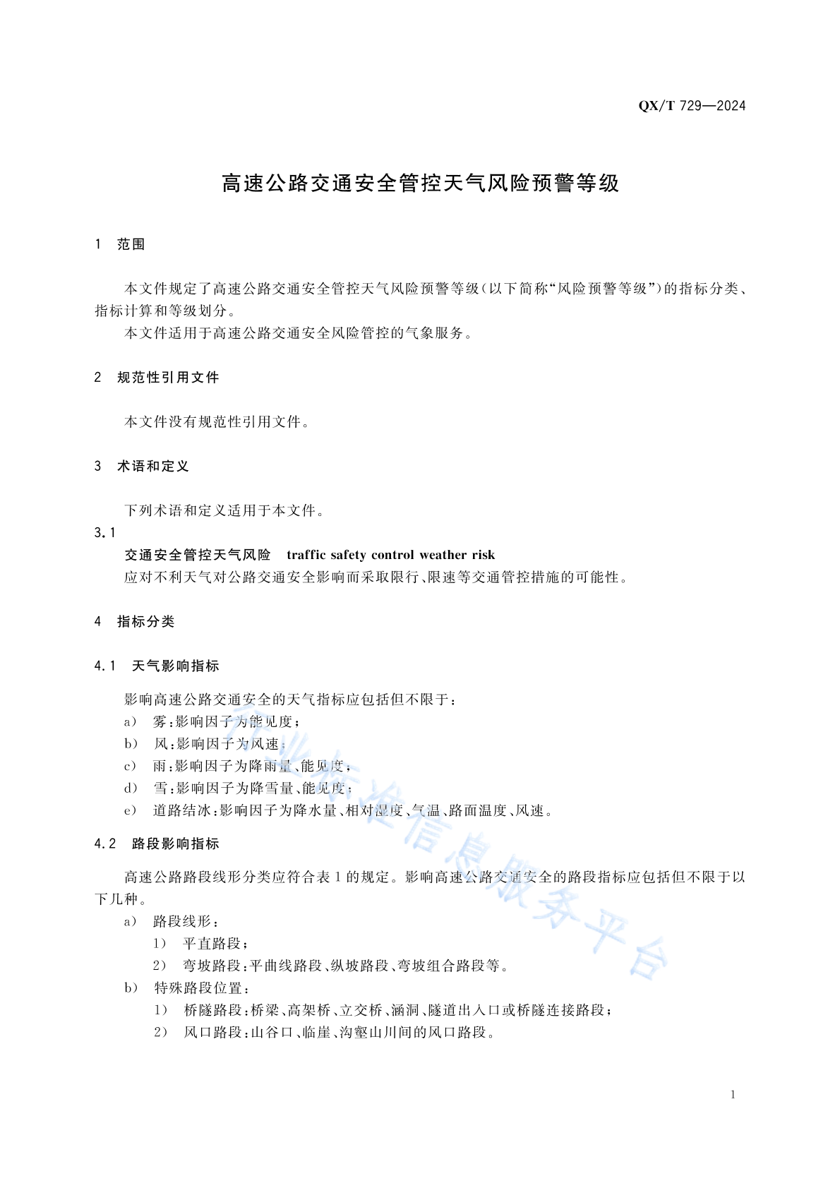 QX/T 729-2024 高速公路交通安全管控天气风险预警等级