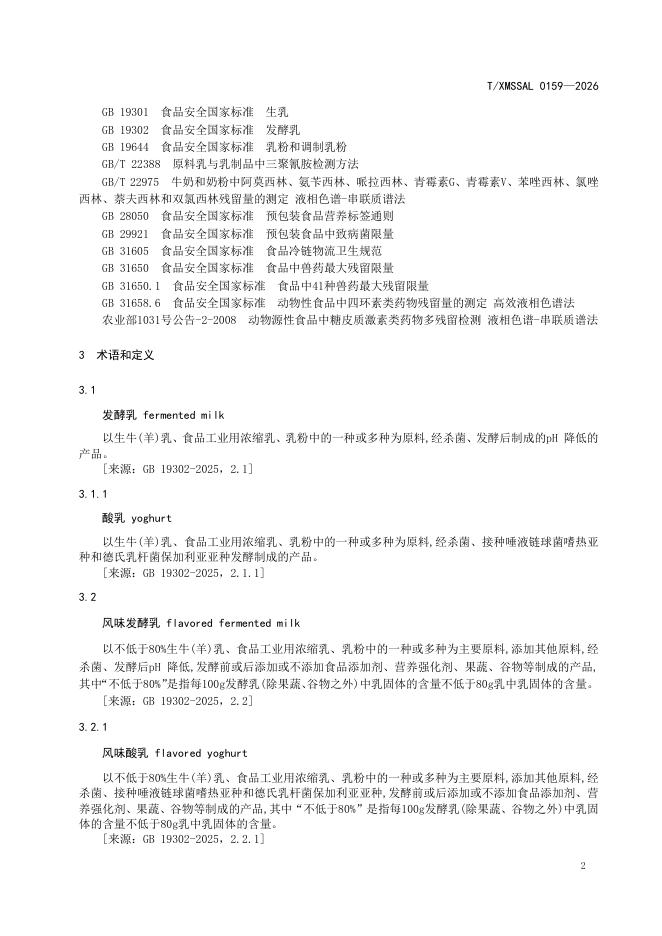 T/XMSSAL 0159-2026 供厦食品 发酵乳