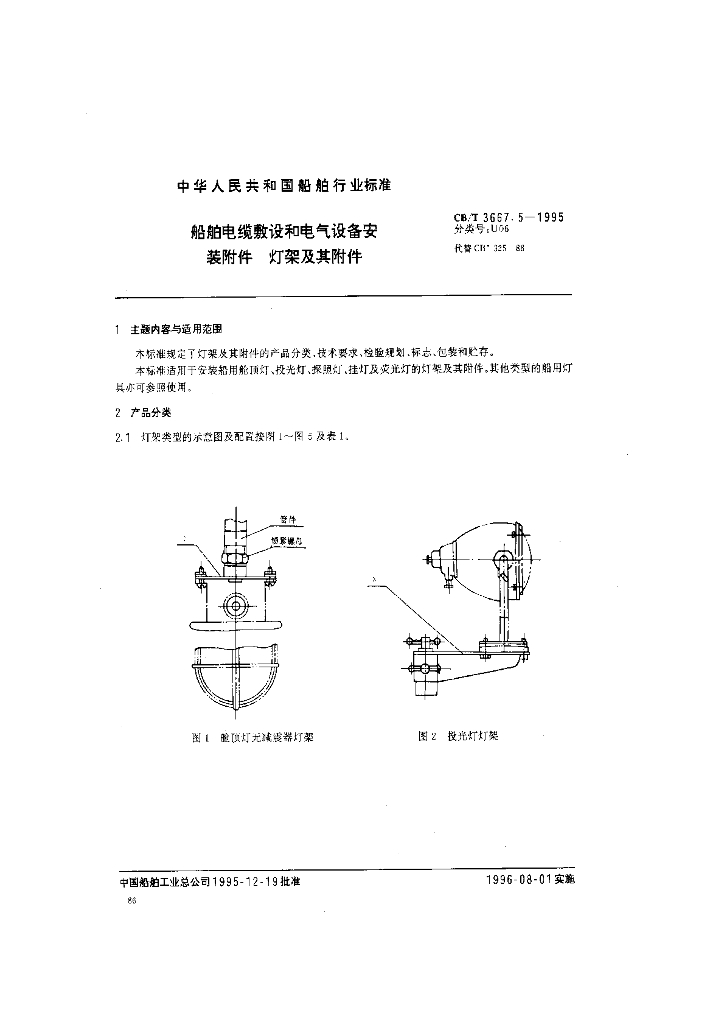 CB/T 3667.5-1995 船舶电缆敷设和电气设备安装附件灯架及其附件