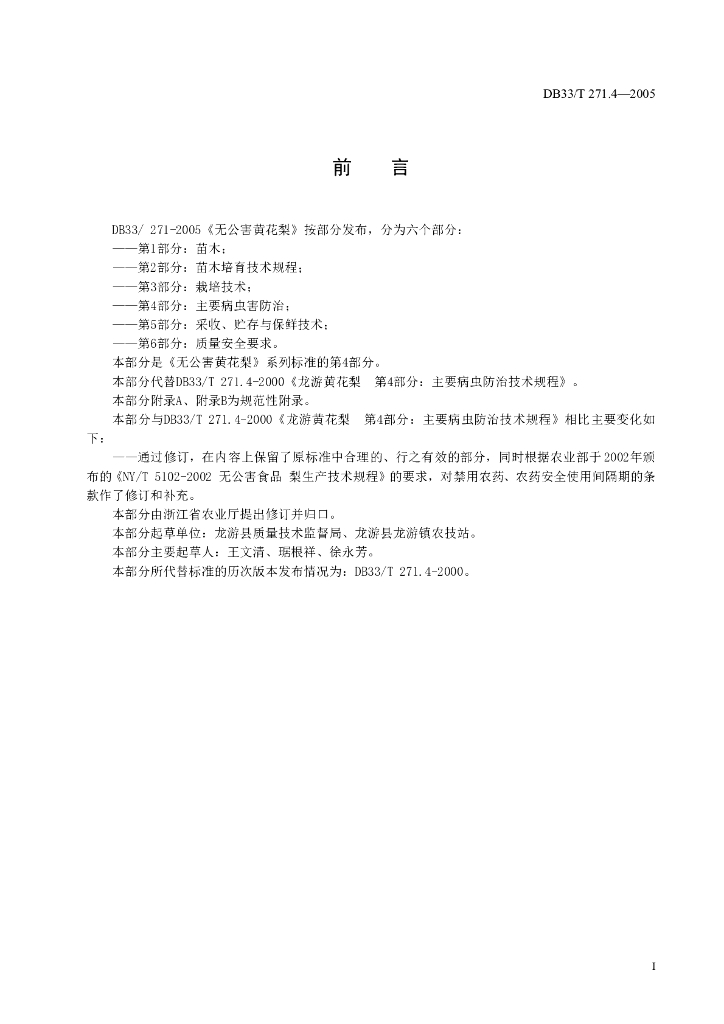 DB33/T 271.4-2005 无公害黄花梨 第4部分:主要病虫害防治