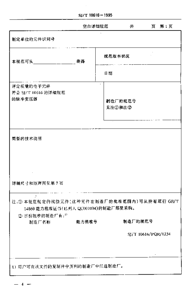 SJ/T 10616-1995 按能力批准程序评定质量的电子设备用脉冲变压器分规范