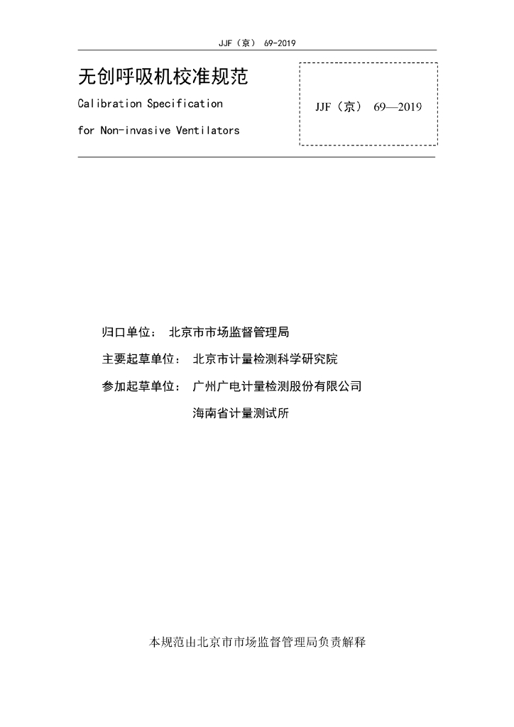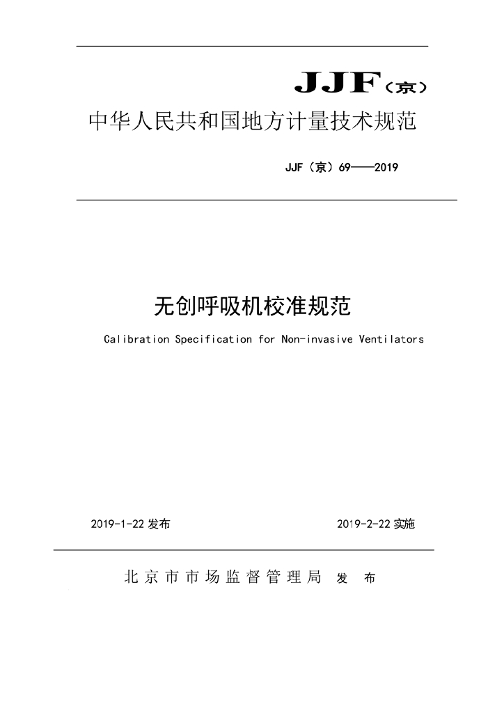 JJF(京)69-2019 无创呼吸机校准规范