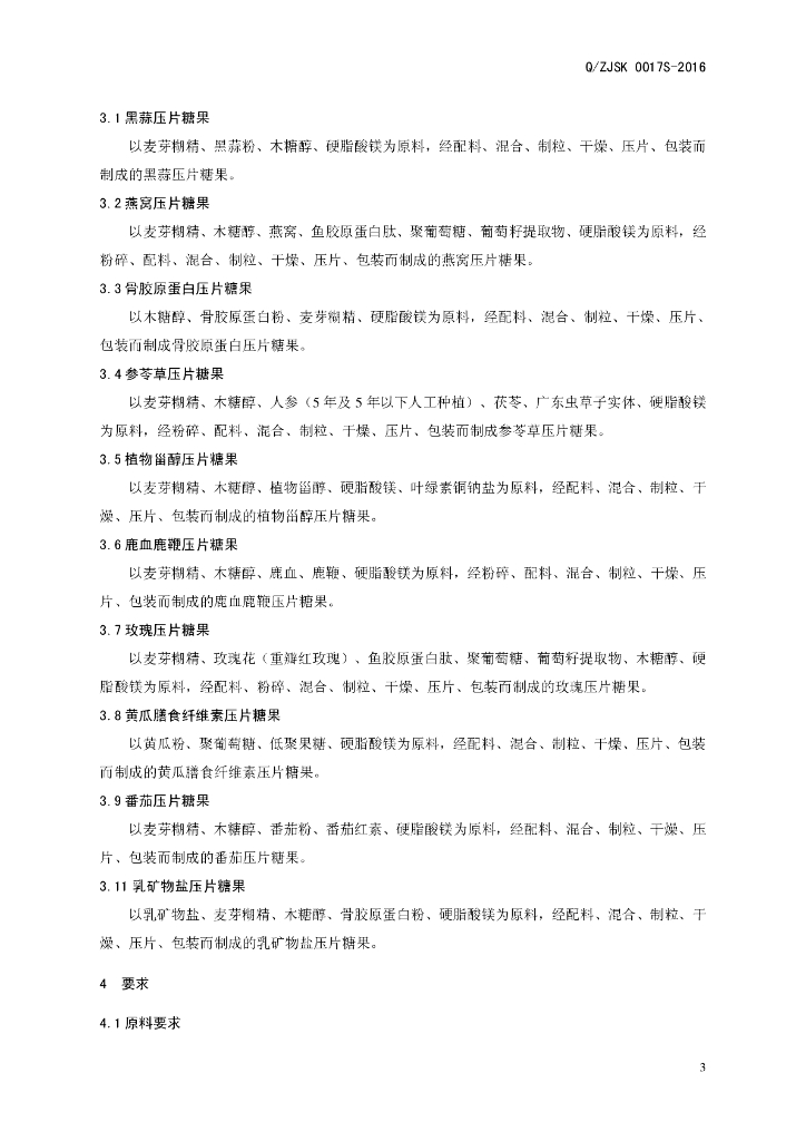 Q/ZJSK 0017S-2016 郑州健倍士食品科技有限公司 压片糖果