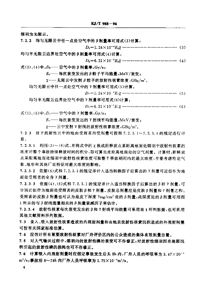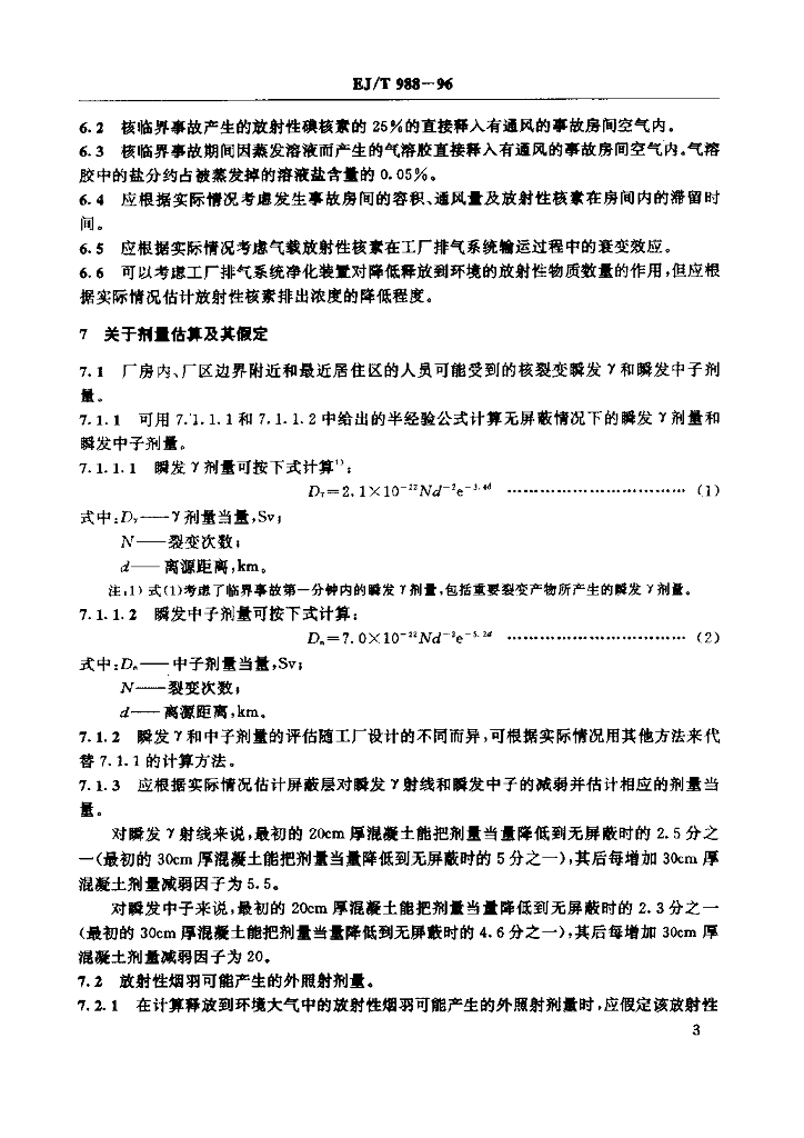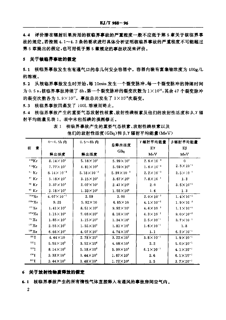 EJ/T 988-1996 用于评估铀燃料制造厂核临界事故潜在辐射后果的假定