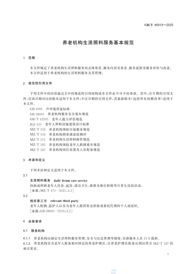 GB/T 46914-2025 养老机构生活照料服务基本规范