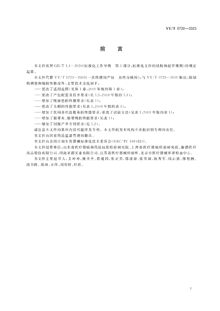 山东省医疗器械和药品包装检验研究院、上海市医疗器械检验研究院、振德医疗用品股份有限公司、河南亚都实业有限公司、江苏省医疗器械检验所、北京市医疗器械审评检查中心