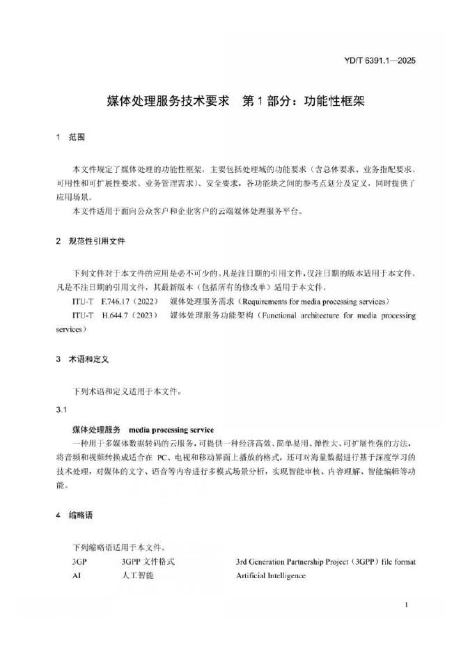 YD/T 6391.1-2025 媒体处理服务技术要求 第1部分:功能性框架