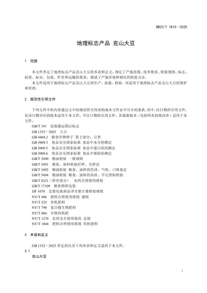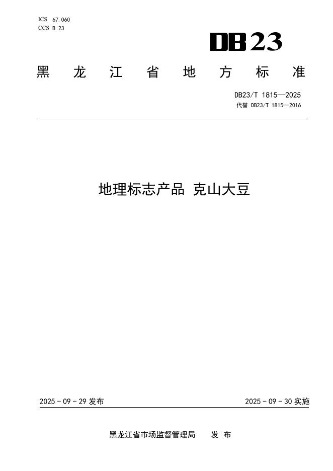 DB23/T 1815-2025 地理标志产品 克山大豆