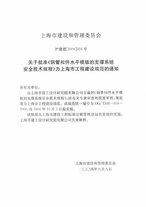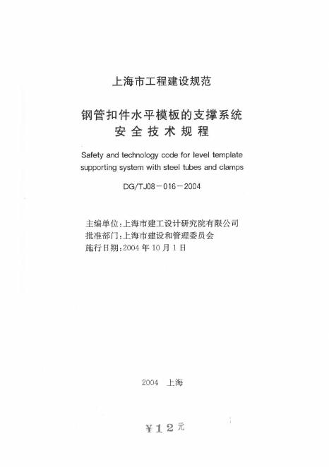 DG/TJ 08-016-2004 上海市钢管扣件水平模板的支撑系统安全技术规程