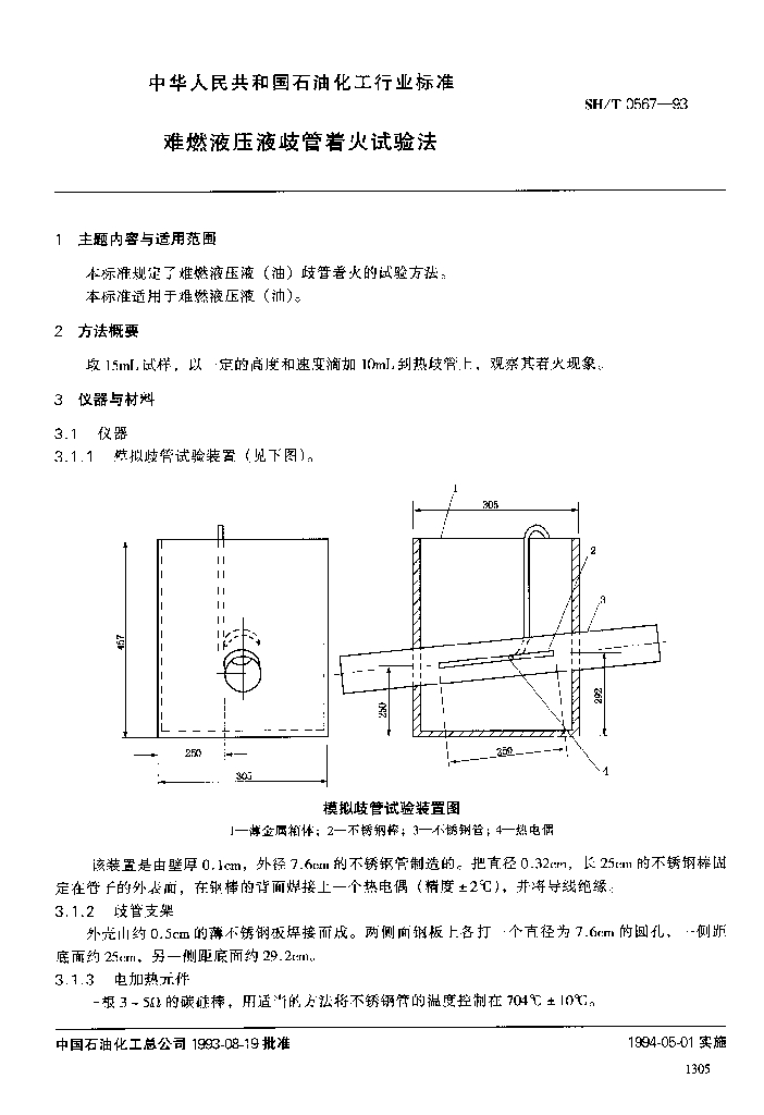 SH/T 0567-1993 难燃液压液歧管着火试验法