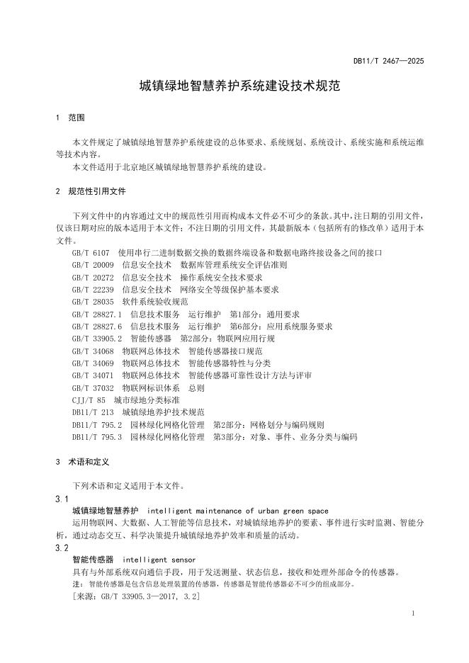 DB11/T 2467-2025 城镇绿地智慧养护系统建设技术规范