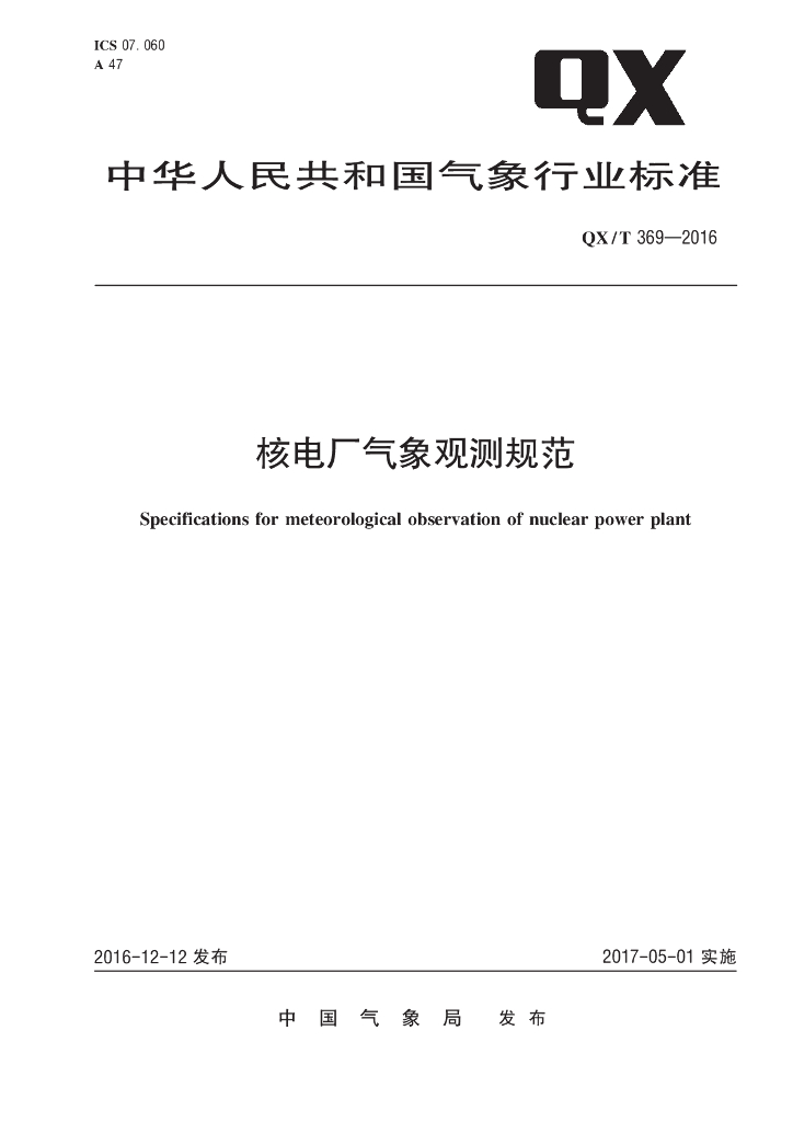 QX/T 369-2016 核电厂气象观测规范