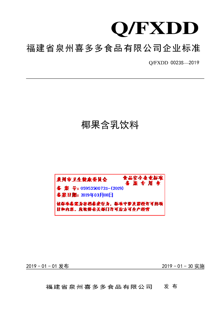 Q/FXDD 0023S-2019 椰果含乳饮料