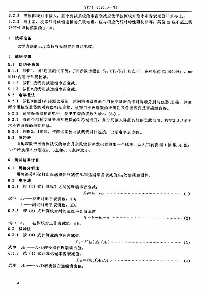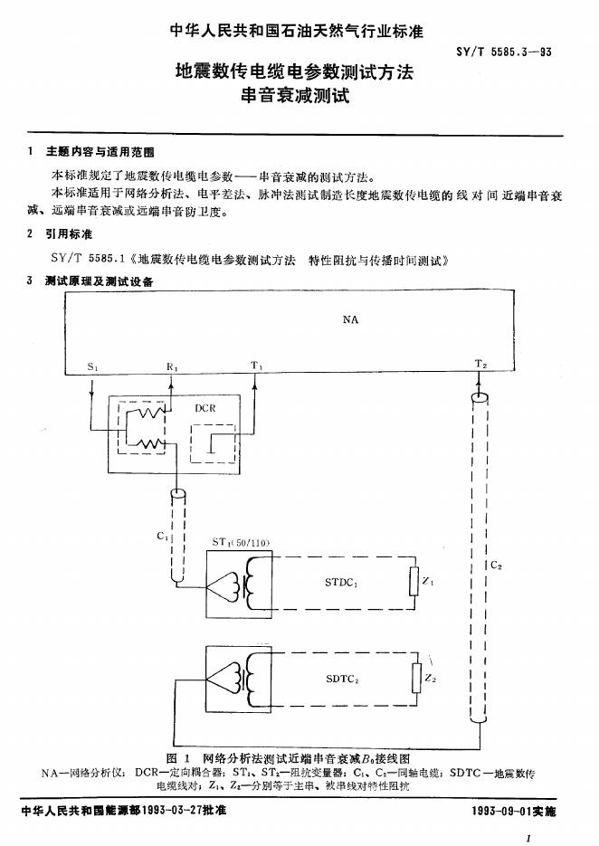 SY/T 5585.3-1993 地震数传电缆电参数测试方法特性阻抗和传播时间测试 串音衰减测试