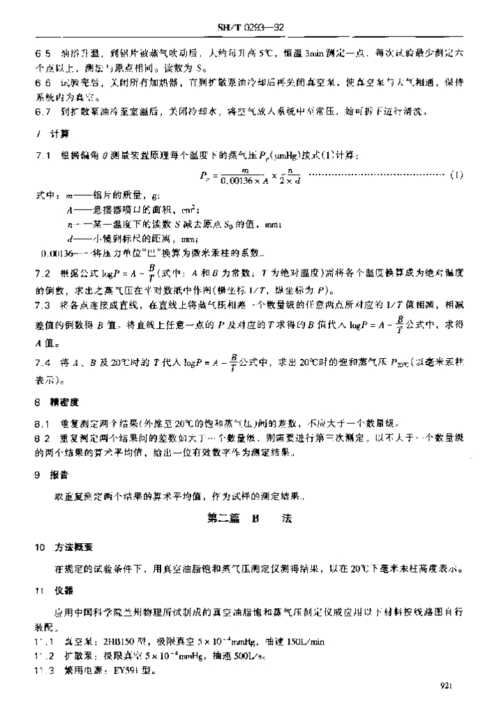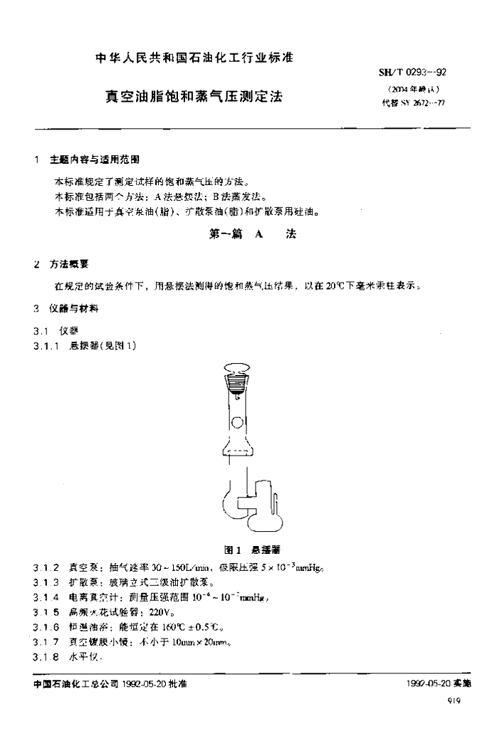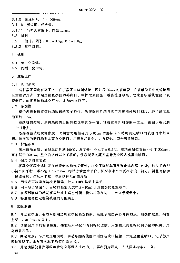 SH/T 0293-1992 真空油脂饱和蒸气压测定法