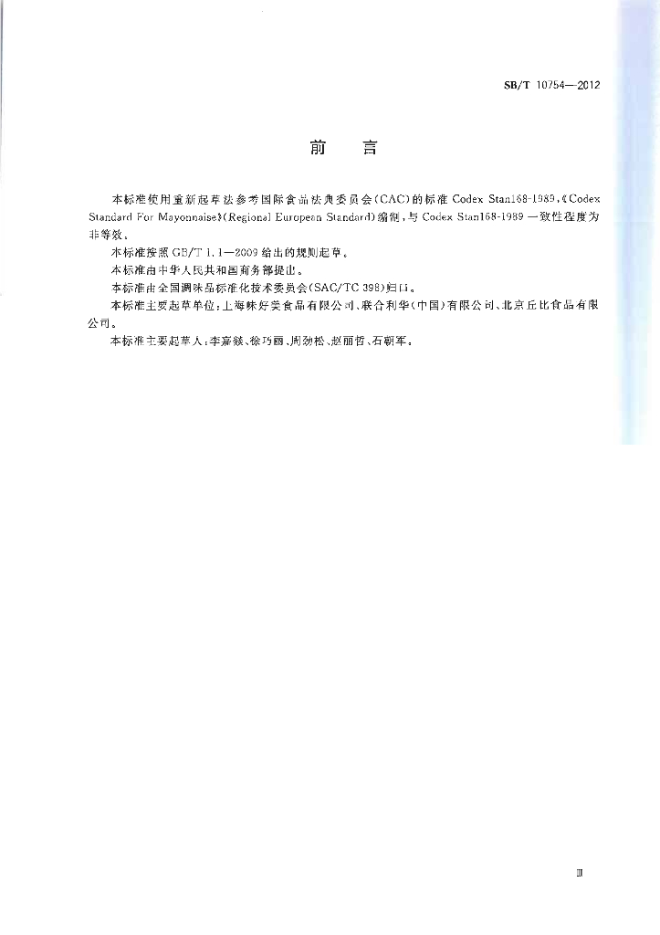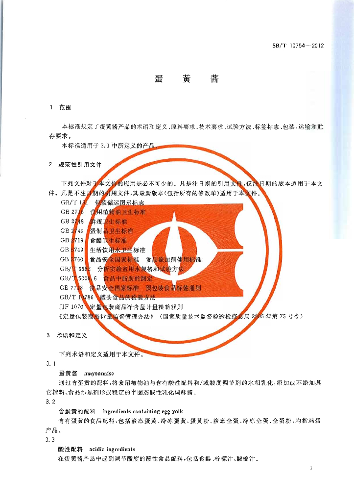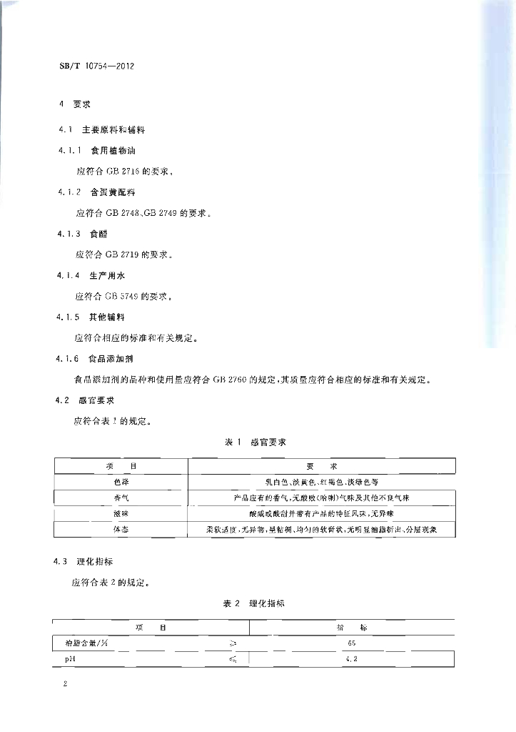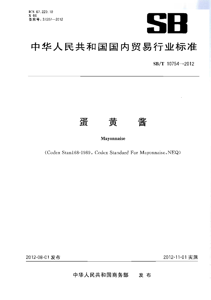 SB/T 10754-2012 蛋黄酱
