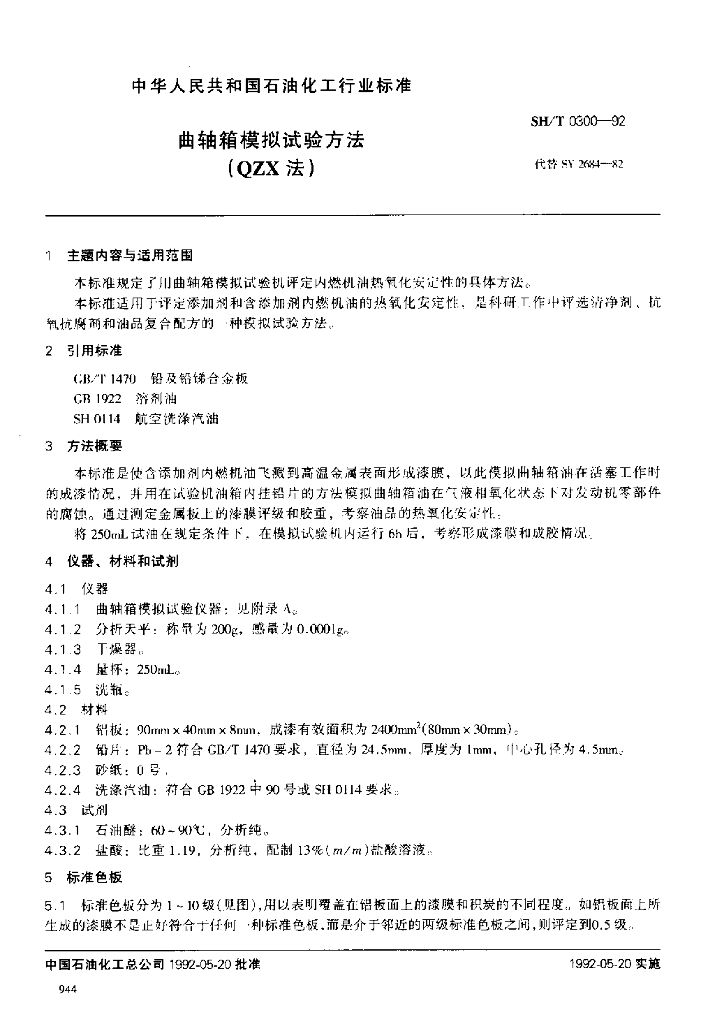 SH/T 0300-1992 曲轴箱模拟试验方法(QZX法)