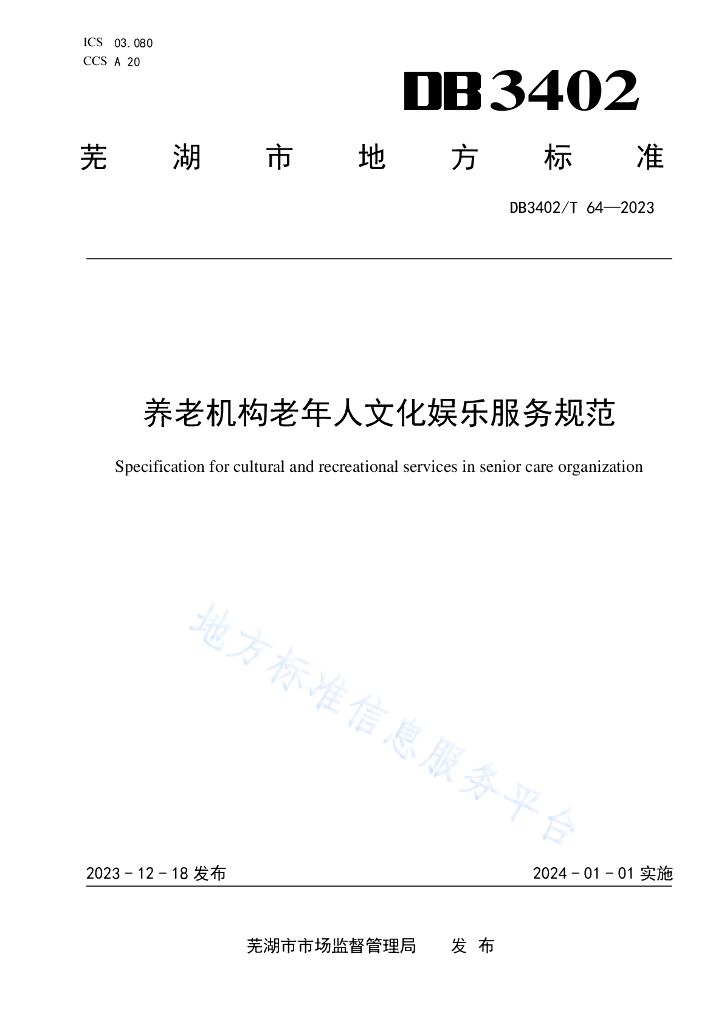 DB3402/T64-2023 养老机构老年人文化娱乐服务规范