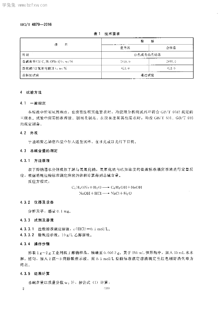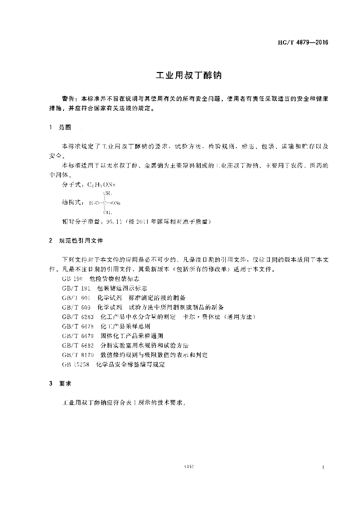 HG/T 4879-2016 工业用叔丁醇钠