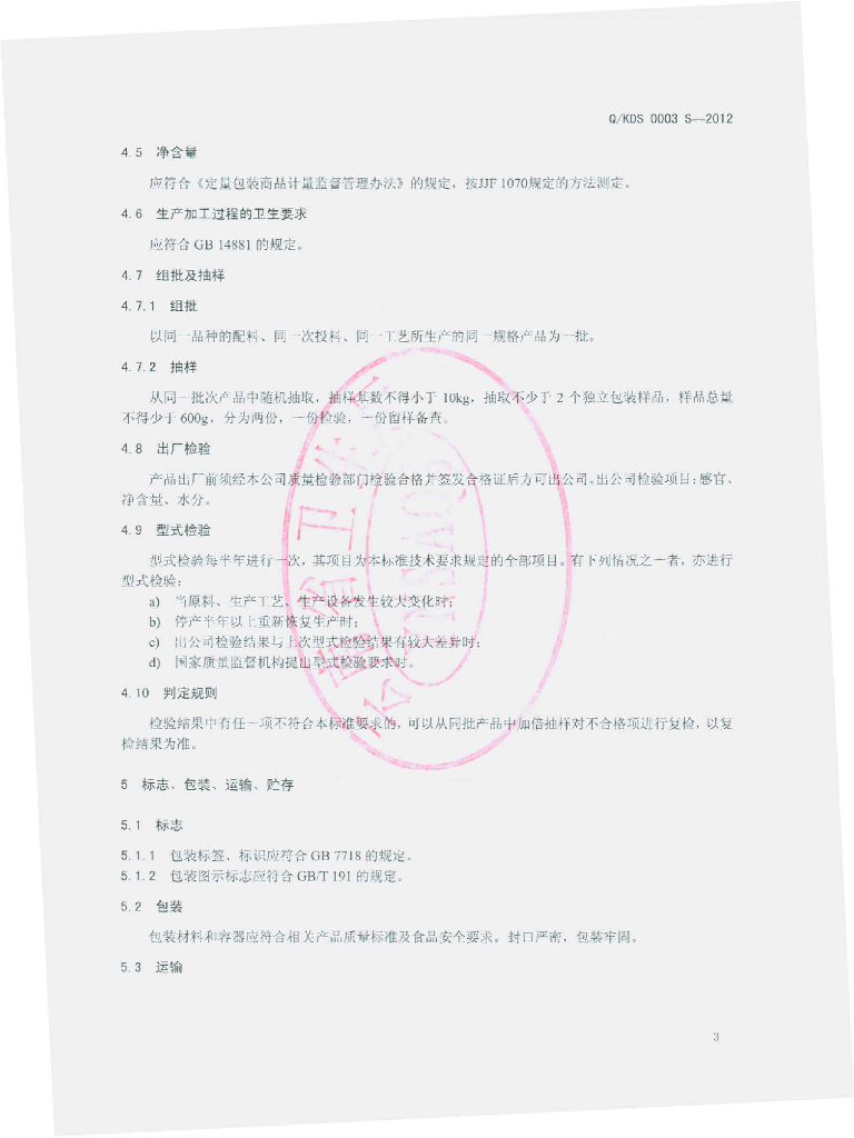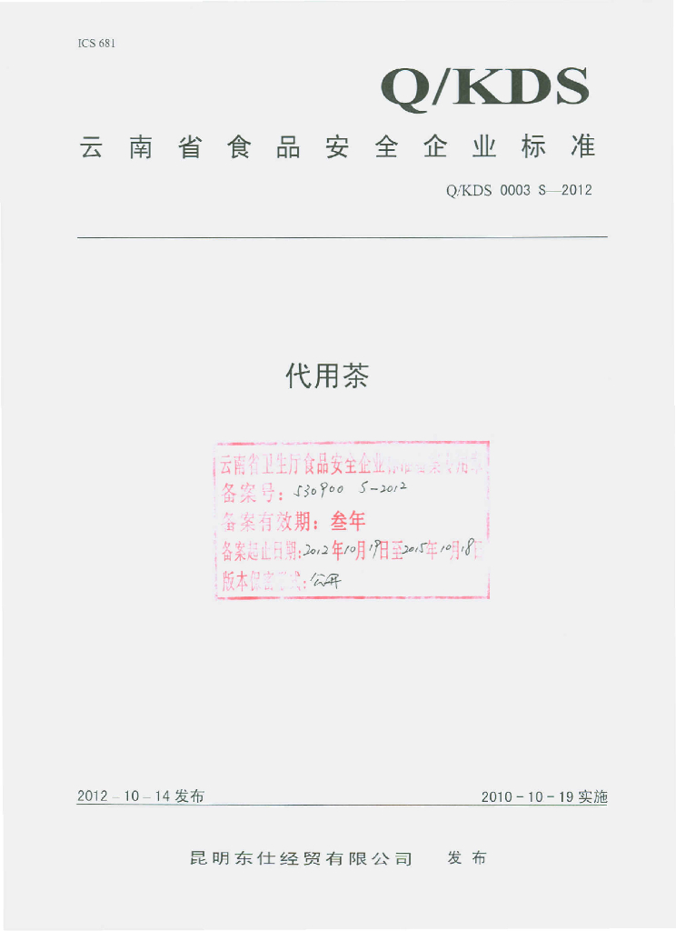 Q/KDS 0003S-2012 代用茶