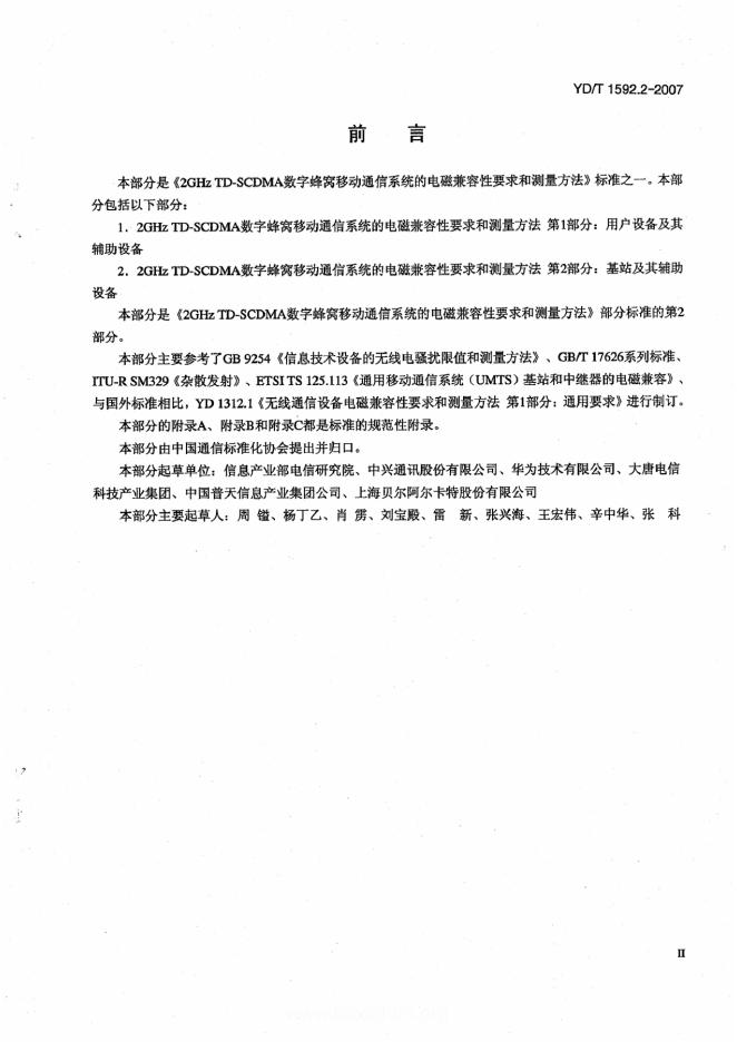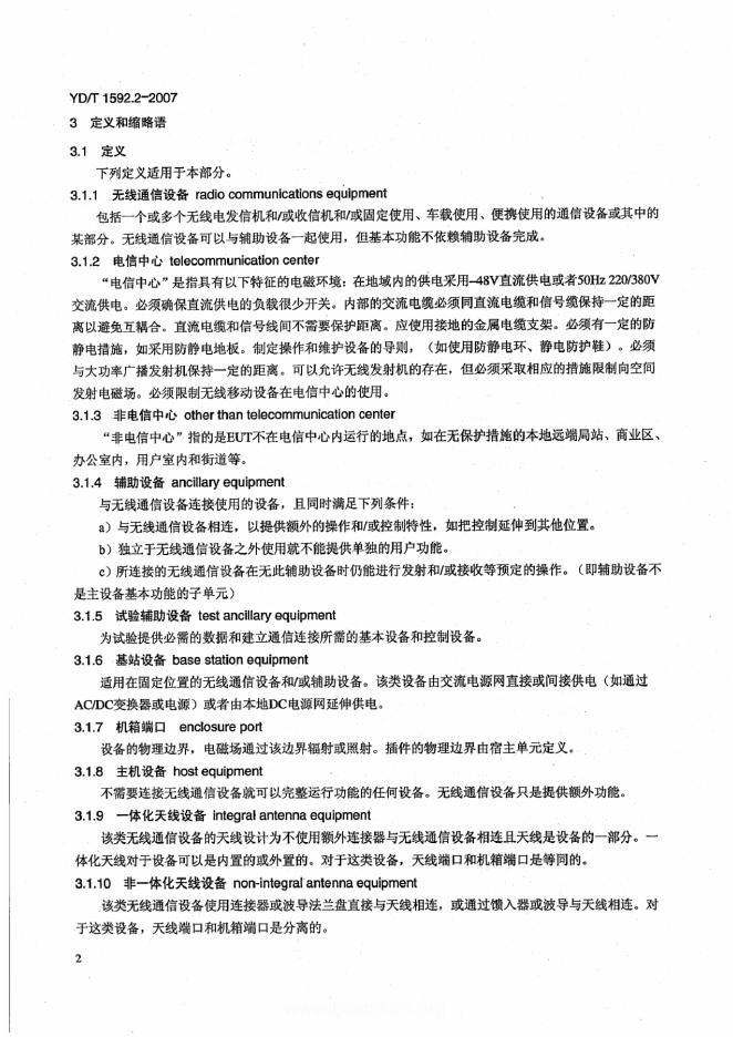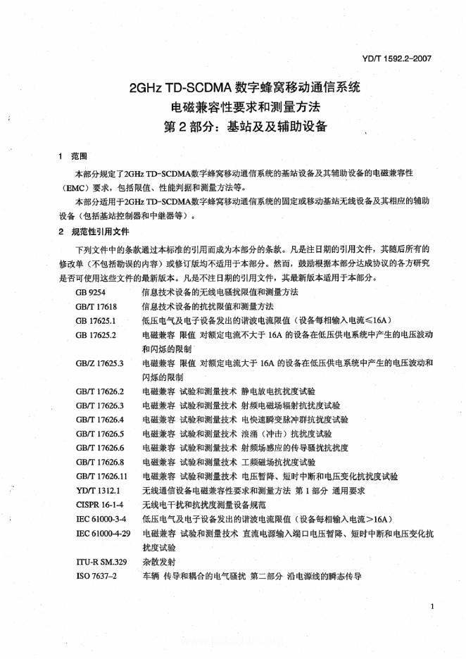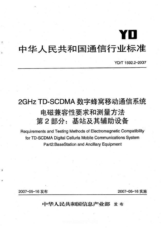 YD/T 1592.2-2007 2GHz TD-SCDMA数字蜂窝移动通信系统电磁兼容性要求和测量方法 第2部分:基站及其辅助设备