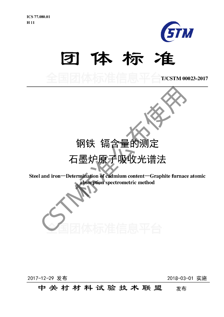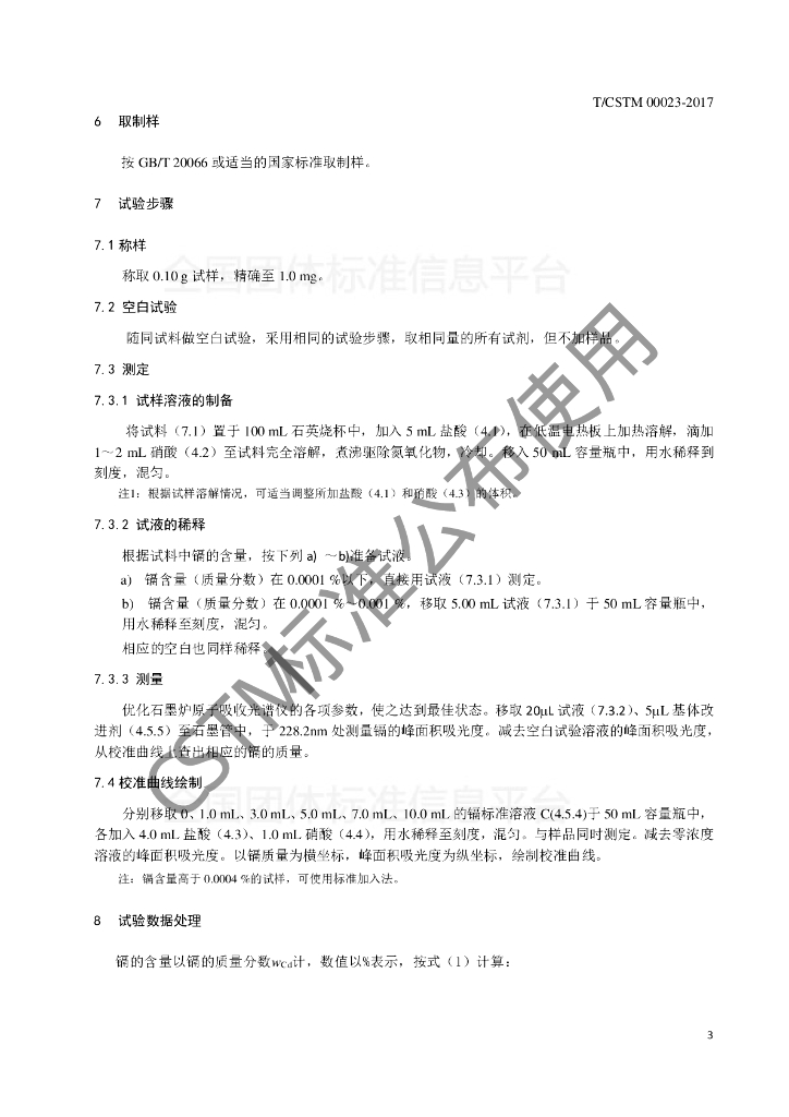 T/CSTM 00023-2017 钢铁及合金 镉含量的测定 石墨炉原子吸收光谱法