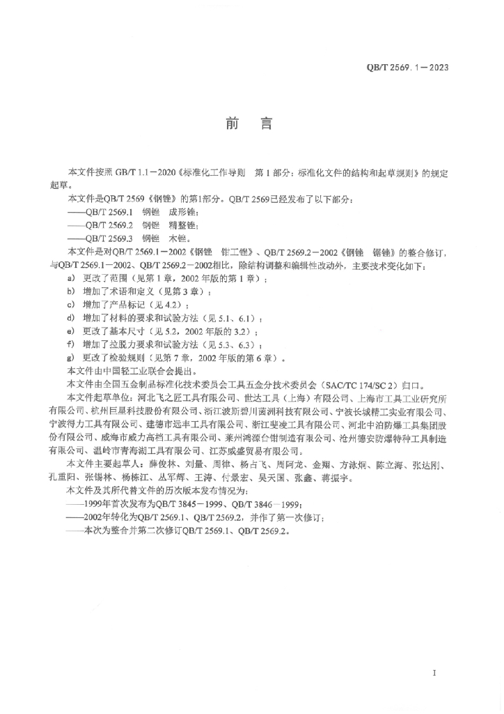 河北飞之匠工具有限公司、世达工具(上海)有限公司、上海市工具工业研究所有限公司、杭州巨星科技股份有限公司、浙江波斯碧川茵洲科技有限公司、宁波长城精工实业有限公司、宁波得力工具有限公司、建德市远丰工具有限公司、浙江斐凌工具有限公司、河北中泊防爆工具集团股份有限公司、威海市威力高档工具有限公司、莱州鸿源台钳制造有限公司、沧州德安防爆特种工具制造有限公司、温岭市青海湖工具有限公司、江苏威盛贸易有限公司