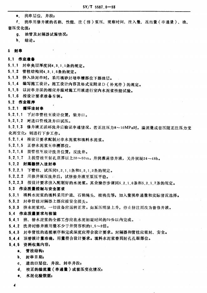 SY/T 5587.8-1993 油水井常规修井作业 找串、封串、验串作业规程