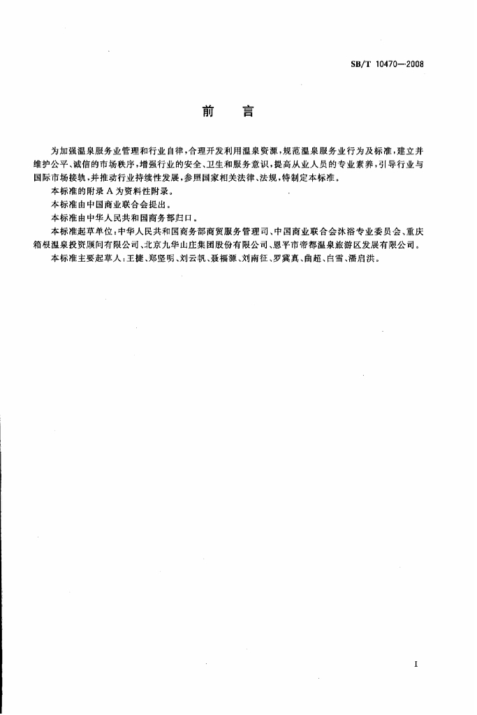 中华人民共和国商务部商贸服务管理司、中国商业联合会沐浴专业委员会、重庆箱根温泉投资顾问有限公司、北京九华山庄集团股份有限公司、恩平市帝都温泉旅游区发展有限公司