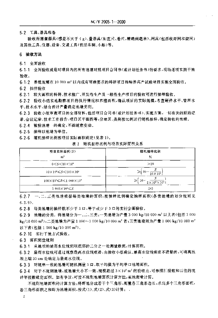 SC/T 2005.1-2000 对虾池塘养殖产量验收方法