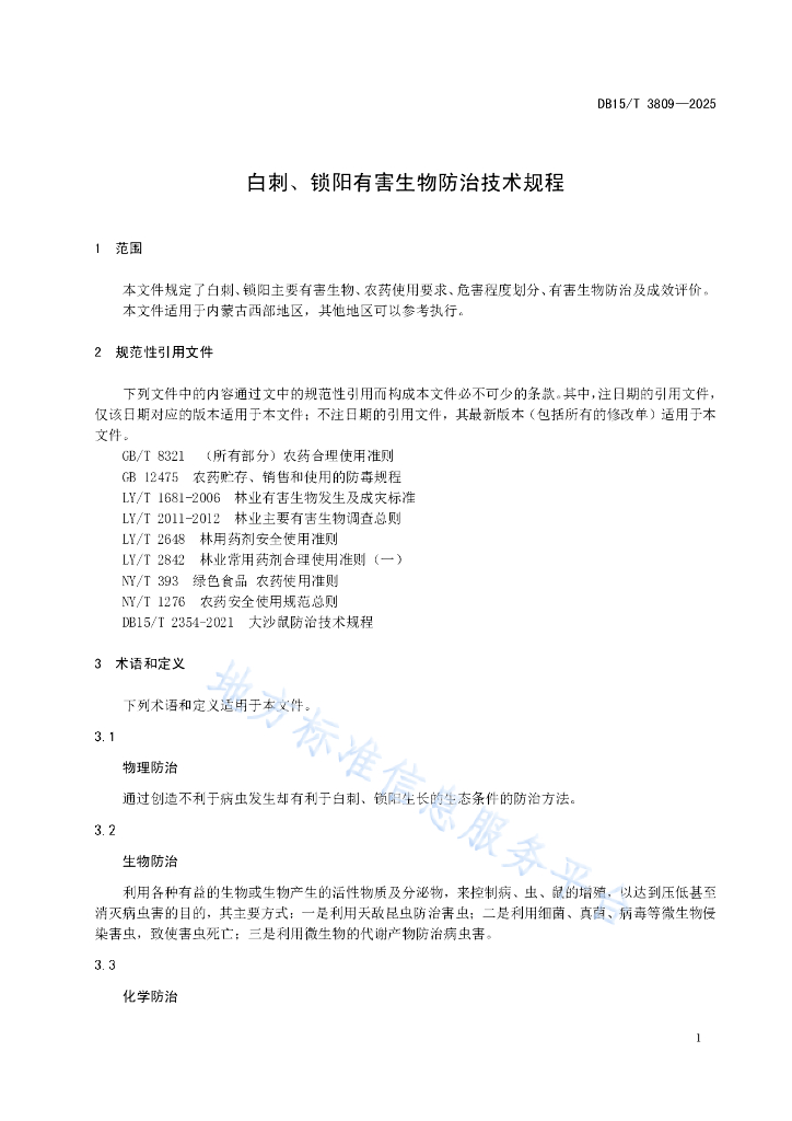DB15/T 3809-2025 白刺、锁阳有害生物防治技术规程