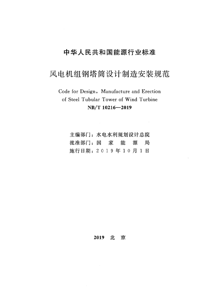 NB/T 10216-2019 风电机组钢塔筒设计制造安装规范