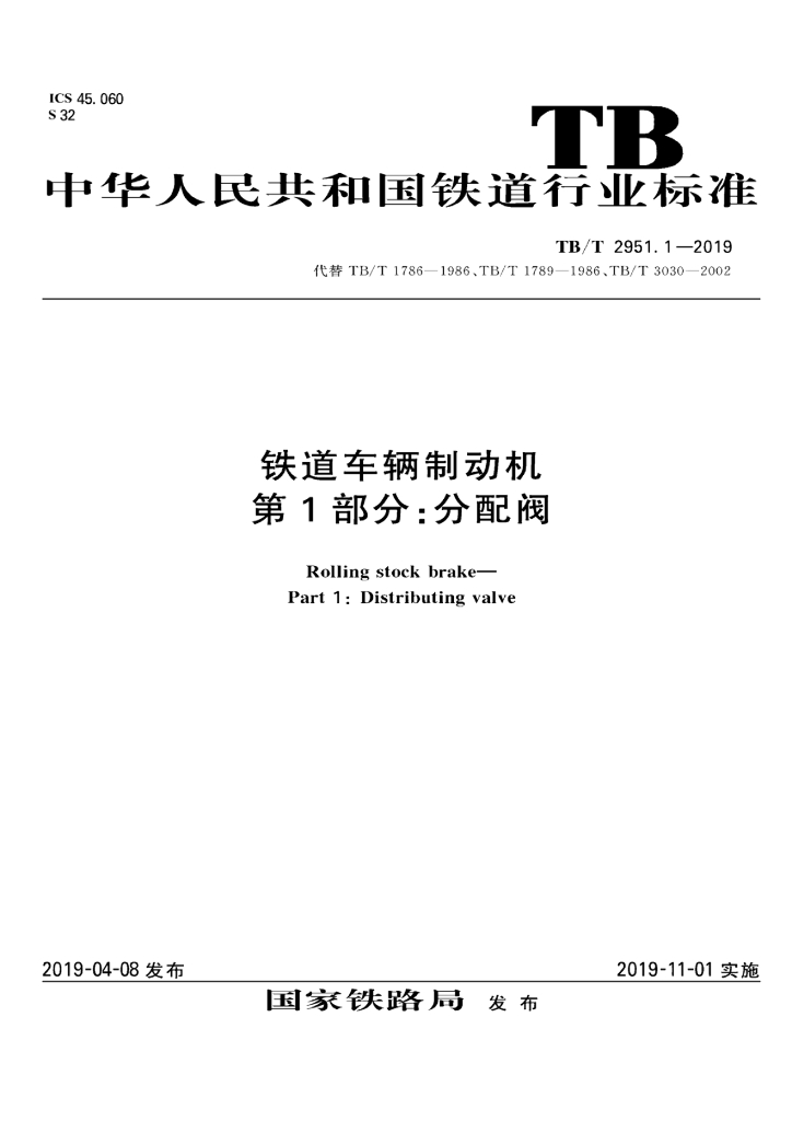 - 代替标准:TB/T 1786-1986;TB/T 1789-1986;TB/T 3030-2002