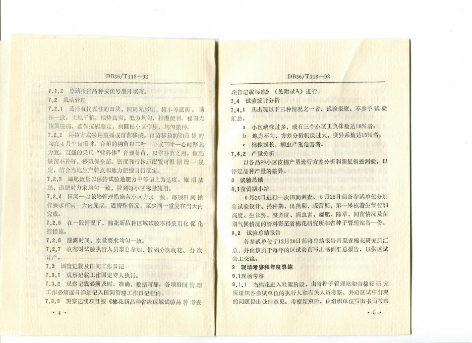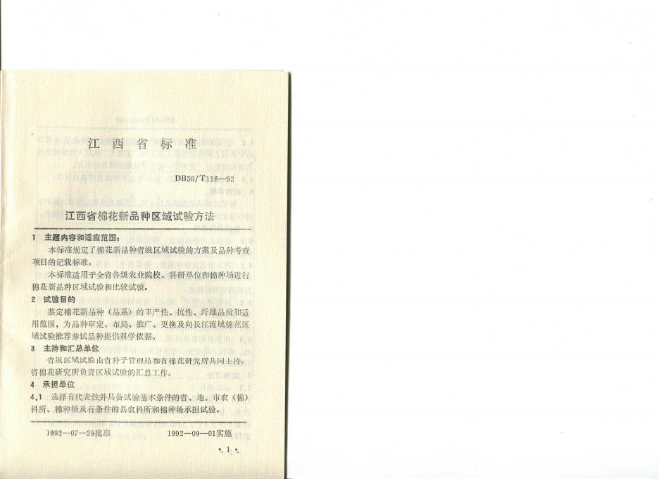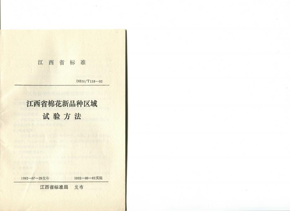 DB36/T 118-1992 江西省棉花新品种区域试验方法