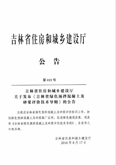 吉林省绿色预拌混凝土及砂浆评价技术导则