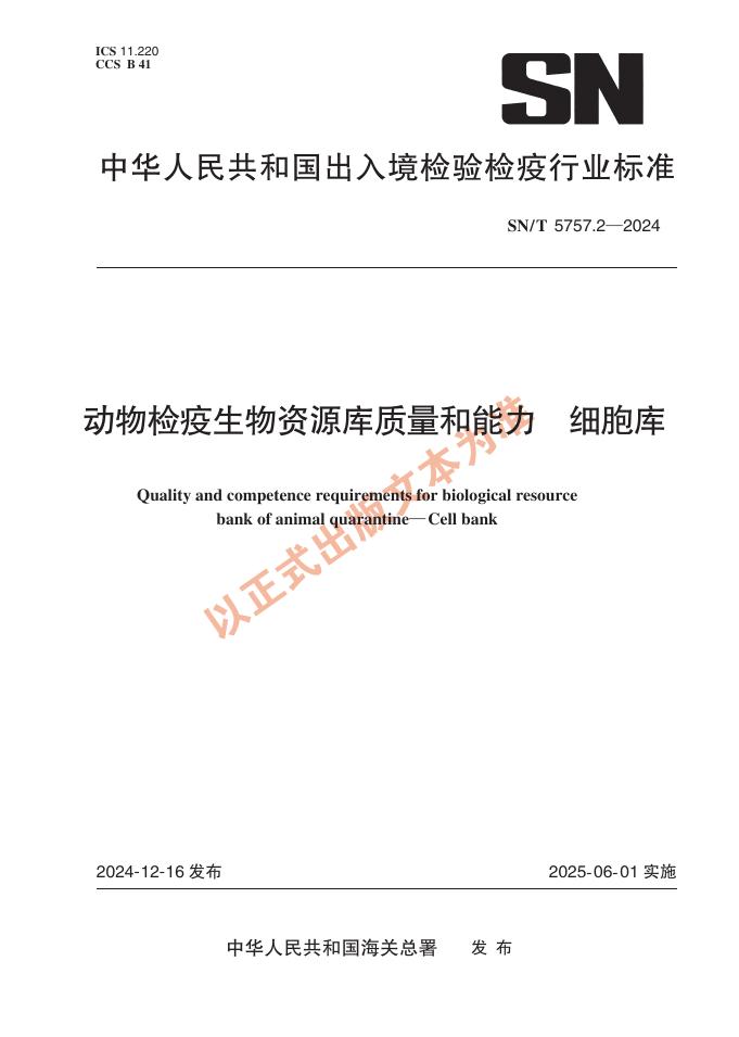 SN/T 5757.2-2024 动物检疫生物资源库质量和能力 细胞库
