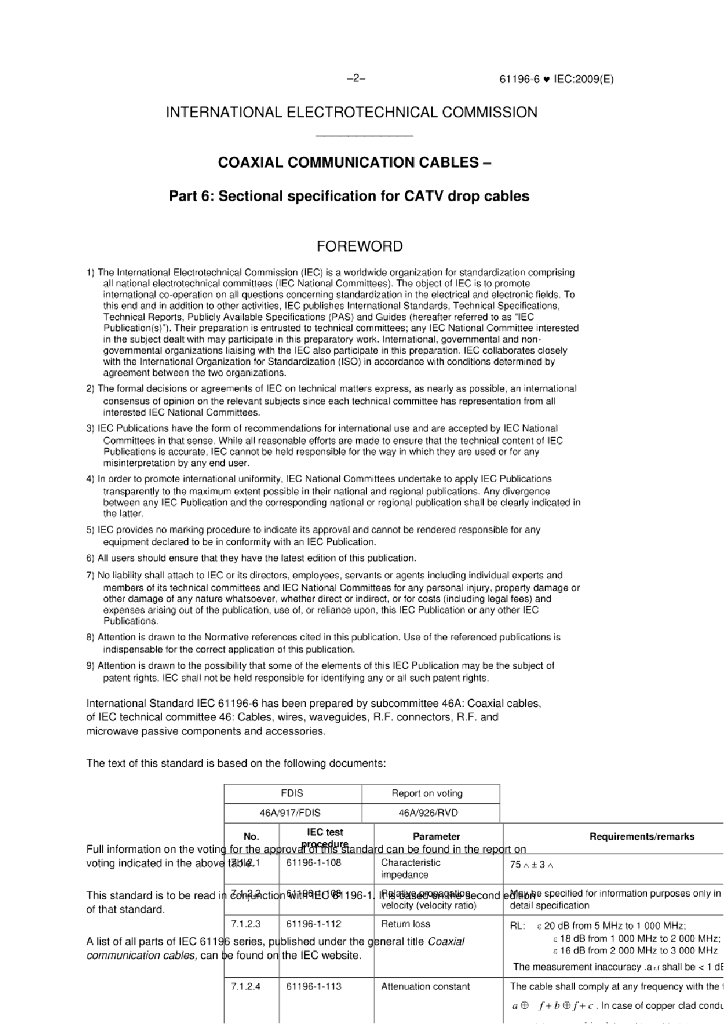 IEC 61196-6:2009 同轴通信电缆 第6部分 CATV传输电缆用分规范