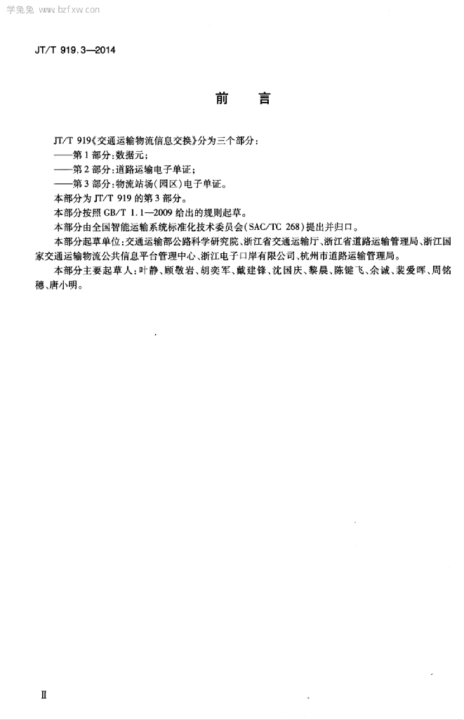 JT/T 919.3-2014 交通运输物流信息交换 第3部分:物流站场(园区)电子单证