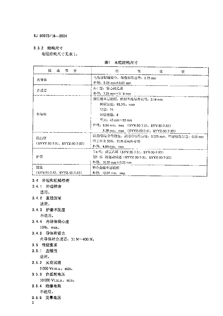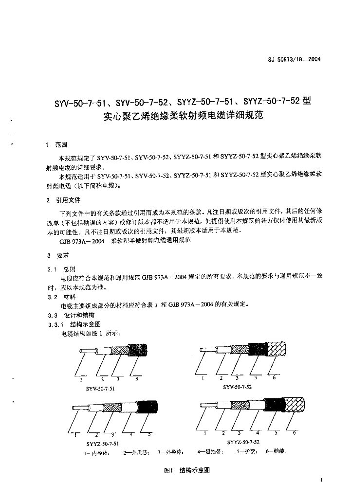 SJ 50973/18-2004 SYV-50-7-51,SYV-50-7-52、SYYZ-50-7-51, SYYZ-50-7-52 型实心聚乙烯绝缘柔软射频电缆详细规范