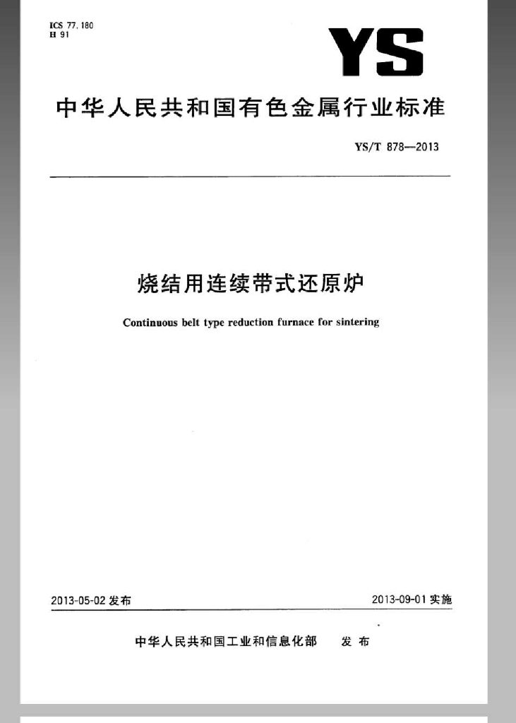 YS/T 878-2013 烧结用连续带式还原炉